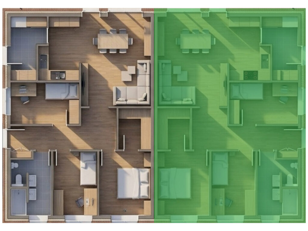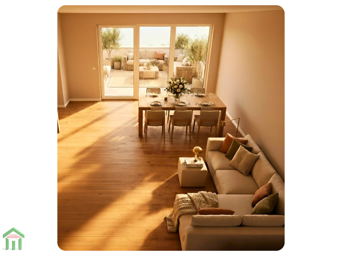 Die in diesem Exposé gezeigten Bilder und 3D-Renderings wurden mit Künstlicher Intelligenz auf Basis der Architektenzeichnungen erstellt. Sie dienen ausschließlich der Veranschaulichung und stellen keine verbindliche Zusage dar. Farben, Materialien, Oberflächen, Möblierung und Ausstattungsdetails können in der tatsächlichen Bauausführung abweichen. Maßgeblich für die Ausführung sind allein die Bau- und Leistungsbeschreibung sowie der notarielle Kaufvertrag.