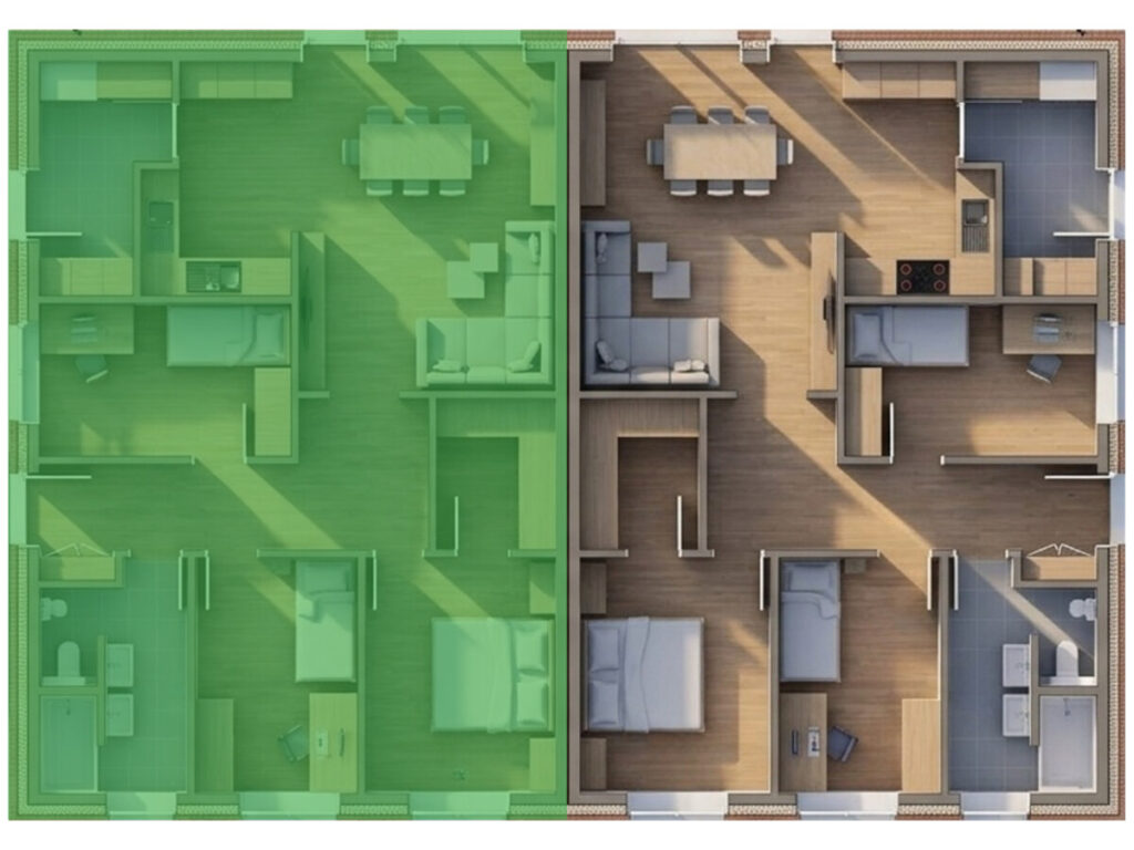 Die in diesem Exposé gezeigten Bilder und 3D-Renderings wurden mit Künstlicher Intelligenz auf Basis der Architektenzeichnungen erstellt. Sie dienen ausschließlich der Veranschaulichung und stellen keine verbindliche Zusage dar. Farben, Materialien, Oberflächen, Möblierung und Ausstattungsdetails können in der tatsächlichen Bauausführung abweichen. Maßgeblich für die Ausführung sind allein die Bau- und Leistungsbeschreibung sowie der notarielle Kaufvertrag.